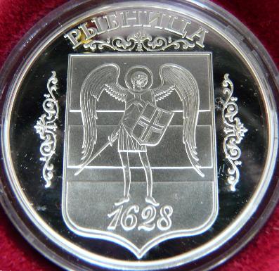 Rībniža is a town on the left bank of River Nistru, belonging to the Republic of Moldova. Nowadays it fell in the separatist zone of the Transnistrian self proclaimed Moldavian republic. At 1628 Rībniža was part of Polish kingdom, being a village inhabited by Moldavians. The coat of arms of Rībniža depicts Archangel Michael, wearing plate armor, with the sword in the right hand and with a shield in the left hand. The Orthodox church Arhangel Michael of Rībniža is depicted on two Transnistrian coins, silver 100 rubles and golden 1000 rubles, both issued in 2006.