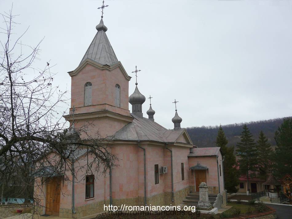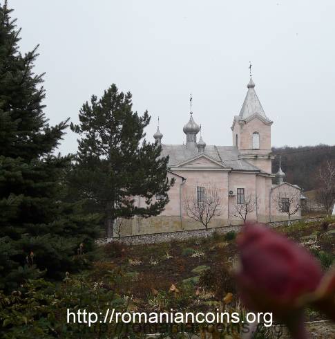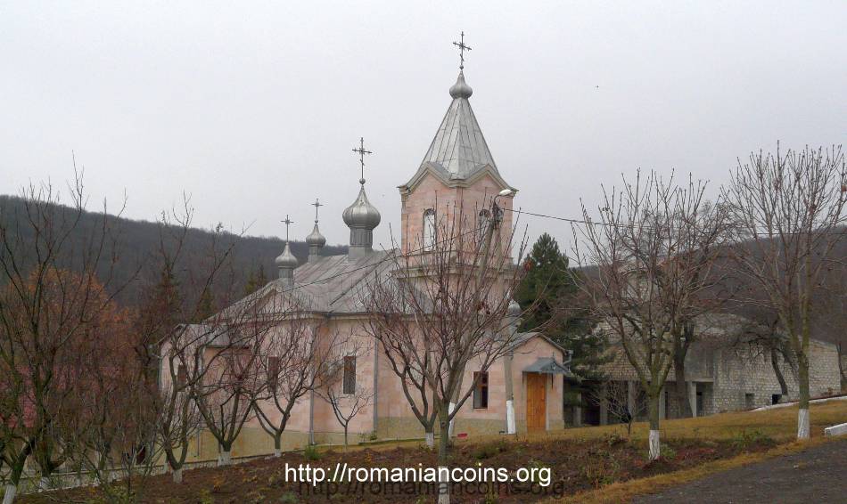It is placed in the commune of Suruceni in the raion of Ialoveni. The monastery is dedicated to the Saint Great-Martyr George. It was founded in 1785 by monk Iosif and boyar Casian Suruceanu. The very first church of the monastery was made in wood (summer church, dedicated to Saint George); it was raised in 1794 and remade in stone in 1828 (the one featured by the coin issued in 2000). The winter church, dedicated to the Saint Hierarch Nicholas, was built in 1860, under abbot Anatolie. The surrounding stone wall was built between 1903 and 1904, under the rule of abbot Dionisie Erhan.