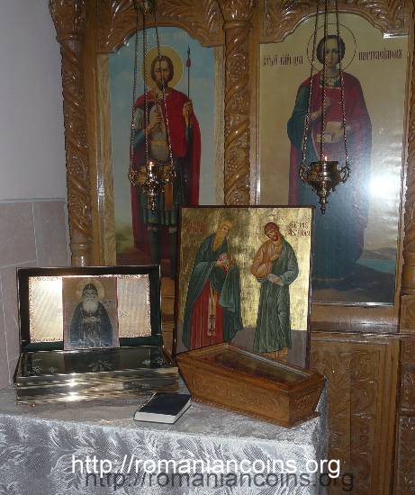 The church bears relics of martyrs Epictet and Astion, martyrized on the 8th of July 290. The relics were found under the altar of the episcopal church of Halmyris, antique town situated between Murighiol and Dunavăț, in the county of Tulcea. The church hosts also fragments of the the body of Saint Antipa from Calapodești (Bacău county).