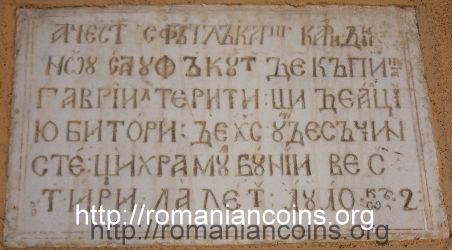 The votive inscription was writen in Romanian, with Cyrillic letters: |