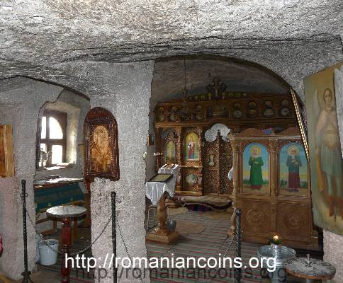 The monastery was established in the 15th century. Nowadays the access into the monastery is done through a tunnel. The tunnel entrance has a belfry above - represented on the 50 lei 2010 coin dedicated to Orheiul Vechi nature and cultural reserve. Nearby, on the edge of the cliff, is a stone cross, dating from the 18th century. In 1816 the five monks and three novices were moved to Suruceni Monastery [1]. Around year 1820 the subterranean church was used by the inhabitants of Butuceni village. From 1904 Butuceni has its own church, dedicated to Saint Mary, erected at the highest point of the promontory.