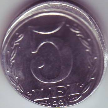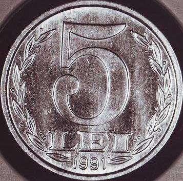 The aluminum 5 lei from 1991 is actually not truly a pattern. Many such coins were struck. Due to unknown reasons these coins never entered circulation, being melted. In December 1992 a 5 lei piece made from nickel plated steel and having 21 milimeters in diameter entered circulation.