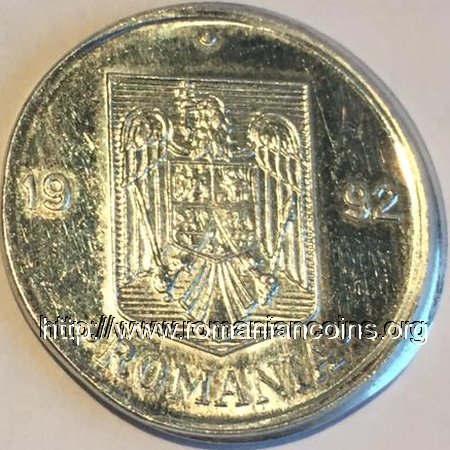 The 5 lei 1992 aluminum off-center strike pattern pictures above are present on Romanian coins through the kind permission of Mr. C.C. from Germany.