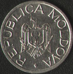 The Republic of Moldova (former Soviet Socialist Moldavian Republic) became independent in 1991 and introduced own circulation currency in 1993. The currency denomination is LEU (plural LEI), a LEU being equal to 100 BANI (singular BAN), just as the Romanian currency. The formal name is LEU MOLDOVENESC (Moldavian leu) - as you will notice, an M lies near the obverse value expressed in LEI or BANI. This explains by the common history, language (even national colors) that the two states, Romania and the Republic of Moldova share. For a good period after independence, the national anthem was also common. Moreover, the Moldavian coin series introduced in 1993 bears the initials C.D. standing for Constantin Dumitrescu, the person who engraved both the Romanian and the Republic of Moldova's coins of the time. Please check the pictures below to acknowledge the striking similarity of the monograms of the two national banks.