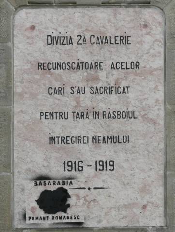 | ușa mausoleului eroilor Diviziei 2 Cavalerie; în criptă se află plăci de marmură cu numele eroilor diviziei căzuți în război |