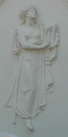 | una din muze, reprezentată pe peretele unei case de pe strada Buna Vestire - august 2007 |
