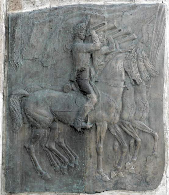 | basorelief pe soclul statuii Independenței - defilarea cavaleriei, după victorie |