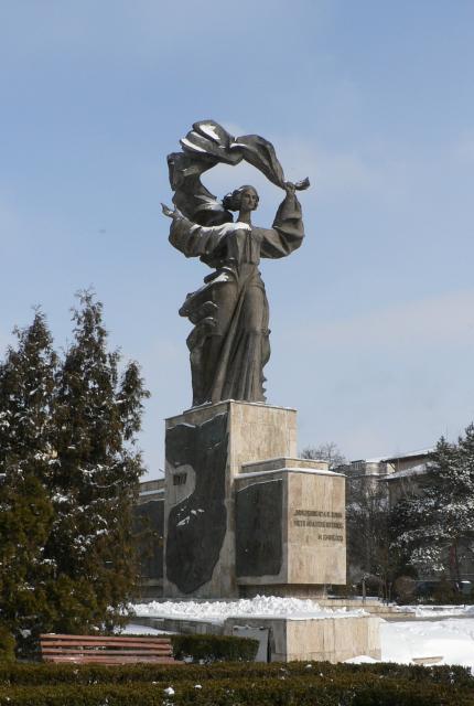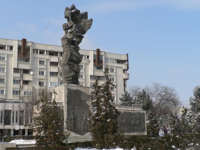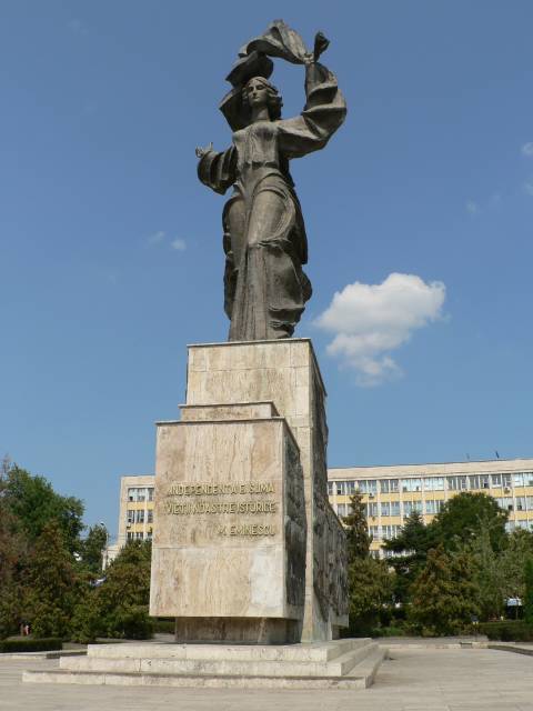 | statuia Independenței; în spate, fosta Policlinica Municipală - august 2007 |