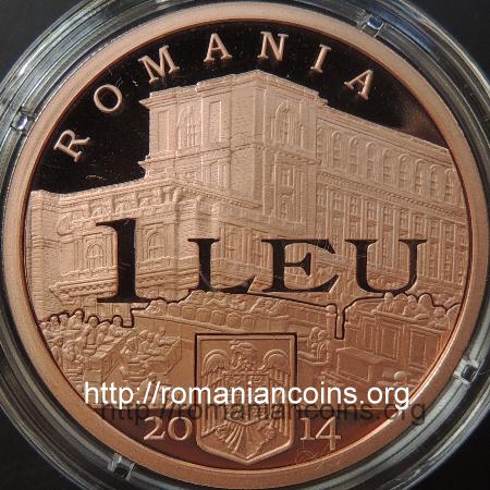 37 mm diametru, 23.5 g, tombac cuprat, margine cu zimți Avers: ROMANIA, valoarea nominală 1 LEU, stema României, anul 2014, sus Palatul Parlamentului din București, jos o imagine cu o ședință a Senatului | Revers: portretele și numele domnitorului Alexandru Ioan Cuza și al mitropolitului Nifon (mitropolitul a fost și primul președinte al Senatului) - ALEXANDRU IOAN CUZA și MITROPOLITUL NIFON, inscripția 150 DE ANI DE LA INFIINTAREA SENATULUI și anul 1864