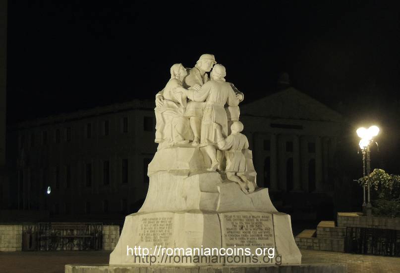 Imaginea de mai jos a statuii provine de pe o carte poștală din 1929. Se vede că, deși există mici deosebiri, alegoria este aceeași.