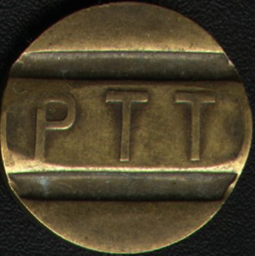 1. PTT ne trimite la Poștă, Telegraf, Telefon. În anii '90 România avea PTTR - Poștă, Telegraf, Telefon, Radio. Jetonul ar putea fi de dinainte de înființarea Radio România, deci de dinainte de 1928.