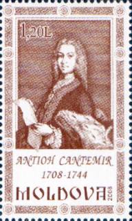 The coin was struck by the Czech Mint. In the Republic of Moldavia year 2008 was declared "Cantemir Year". On this occasion two anniversary coins were issued, a silver one dedicated to the poet Antioh Cantemir, and a gold one dedicated to prince Dimitrie Cantemir. Dimitrie Cantemir also appears on the 50 lei silver from 2003 and on a coin set issued by the National Bank of Romania: 1 leu, 5 lei and 100 lei 2007. Republic of Moldova issued stamps with all three rulers from the Cantemir dynasty, and also with poet Antioh Cantemir. Another two members of Cantemir family are mentioned in the chronicle of chronicler Ion Neculce: two sons of voivod Antioh Cantemir, Dimitrie and Constantin. In 1739 the two brothers participated as officers of the Russian army into the Moldavian campain. The Russians came "... with Constantin Cantemir and with Dumitrașco Cantemir, sons of Antioh-voivod, being there to the Muscovites among foreigners". Dimitrie was major and Dimitrie was brigadier. |