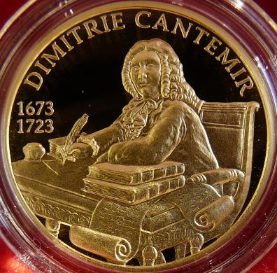 Dimitrie Cantemir sitting at his writing desk, years 1673 and 1723, inscription DIMITRIE CANTEMIR Maximum mintage: 1000 coins |