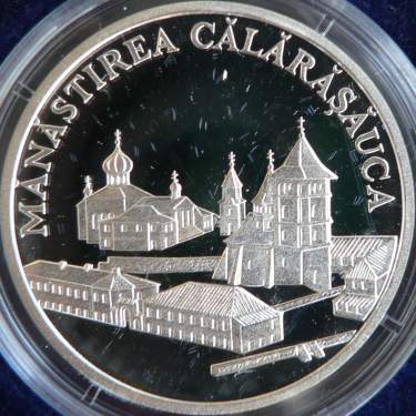 30 mm diameter, 16.5 g, 92.5% silver, flat edge denomination "50 LEI", year 2000, circular inscription REPUBLICA MOLDOVA meaning "REPUBLIC OF MOLDAVIA" and the coat of arms of the Republic of Moldavia | circular inscription "MĂNĂSTIREA CĂLĂRĂȘAUCA" meaning "CĂLĂRĂȘĂUCA MONASTERY" and an image of the monastery |