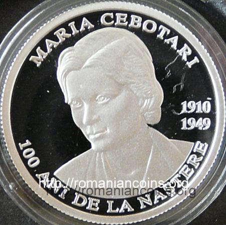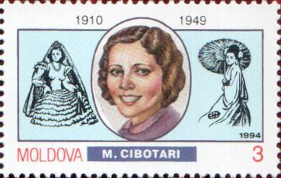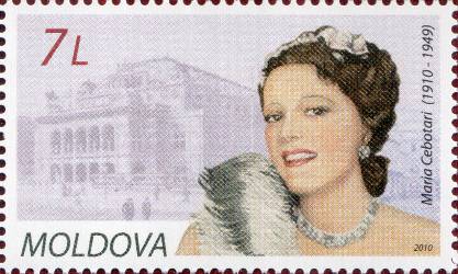 bust of the soprano, inscription "MARIA CEBOTARI 100 ANI DE LA NAȘTERE" meaning "100 YEARS SINCE BIRTH" and years 1910 and 1949