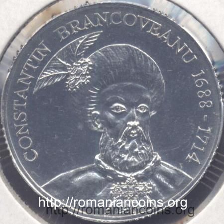 ? mm diametru, ? g, aluminiu ? valoarea nominală 1000 LEI, două linii orizontale, anul 2000, stema României, ROMANIA | Revers: CONSTANTIN BRANCOVEANU 1688 - 1714, bustul voievodului |