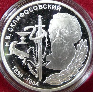 | bustul lui Nicolai Vasilievici Sklifosovski (medic chirurg rus, născut la Dubăsari) lîngă o ramură de lauri, un șarpe de apă încolăcit în jurul unei săbii și cu capul deasupra unei cupe, o șopîrlă cu coada ruptă lîngă o plantă cu țepi, inscripția N.V. SKLIFOSOVSKI (cu litere chirilice) și anii 1836 - 1904 | bustul pictorului impresionist rus Mihail Fiodorovici Larionov (născut la Tiraspol) lîngă o ramură de lauri, o cortină pe care sînt măștile comediei și tragediei, o paletă de pictură și trei pensoane, inscripția M.F. LARIONOV (cu litere chirilice) și anii 1881 - 1964 |