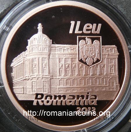 37 mm diametru, 23.5 g, tombac cuprat, margine cu zimți Avers: valoarea nominală 1 LEU, stema României, ROMANIA, anul 2013, palatul Academiei de Științe Economice din București | Revers: aula din palatul ASE, inscripția ACADEMIA DE STUDII ECONOMICE DIN BUCURESTI, anii 1913 și 2013