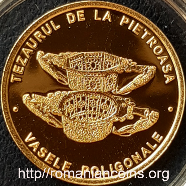 10 lei aur 2022 - tezaurul de la Pietroasa - vasele poligonale - seria Istoria aurului |