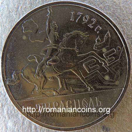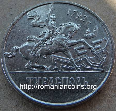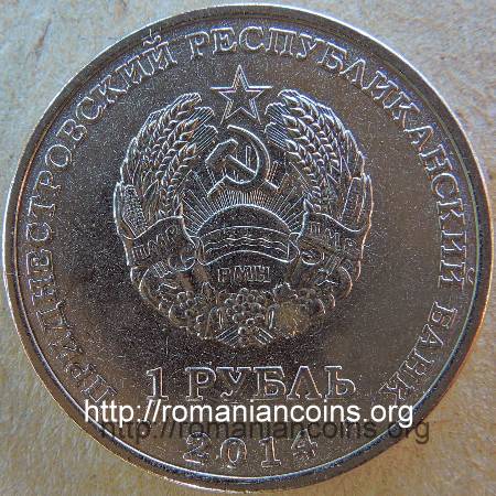 22 mm diametru, 4.65 g, oțel placat cu nichel, margine netedă Avers: valoarea nominală 1 RUBLI, stema autoproclamatei republici transnistrene (cu secera și ciocanul), inscripția · PRIDNESTROVSKII RESPUBLIKANSKII BANK · (cu litere chirilice) însemnînd BANCA REPUBLICANĂ [TRANS] NISTREANĂ, anul 2014 | Revers: monumentul lui Suvorov plasat deasupra planului cetății Tiraspol, inscripția 1792 G. însemnînd (anul) 1792, în exergă TIRASPOL Tiraj: 50.000 de exemplare |