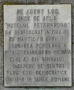 Pe 27 martie / 8 aprilie 1848 are loc la Iași marea întrunire de la Hotelul Petersburg, reprezentînd începutul revoluției în Moldova și în spațiul românesc. Mișcarea din Moldova este înăbușită două zile mai tîrziu, cînd vodă Mihail Sturza arestează majoritatea capilor revoluției.