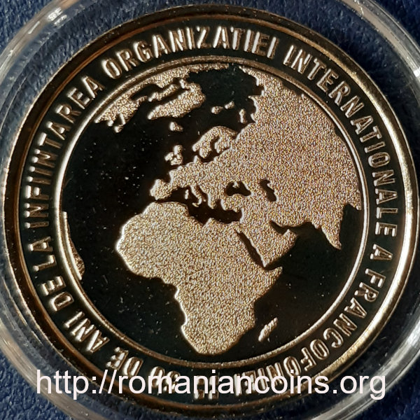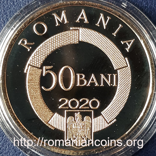 23.75 mm diametru, 6.1 g, alamă Cu80Zn15Ni5, margine netedă, cu inscripţia ROMANIA ★ (de două ori) Avers: ROMÂNIA, valoarea nominală 50 BANI, anul 2020, stema României, sigla Organizației Internaționale a Francofoniei | Revers: un glob pămîntesc centrat pe Europa și Africa (un simbol al folosirii limbii franceze la nivel global), inscripția circulară 50 DE ANI DE LA INFIINTAREA ORGANIZATIEI INTERNATIONALE A FRANCOFONIEI