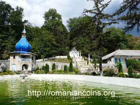 Biserica mare, ctitorită în 1846, este reprezentată pe monedă. A fost restaurată în anul 1998. În spatele bisericii pe monedă apar biserica de iarnă (1840) și, probabil, chilii ale mănăstirii. O a treia biserică a fost ridicată în anul 2009, și este plasată deasupra izvorului, lîngă bazin. Această bisericuță este închinată icoanei făcătoare de minuni a Maicii Domnului Izvorul Tămăduirilor”. (Izvorul Tămăduirilor este o sărbătoare ortodoxă a Maicii Domnului, sărbătoare ce amintește de o vindecare miraculoasă a unui orb la un izvor de lîngă Constantinopol, petrecută cu 15 veacuri în urmă. Are loc în prima vineri după Paște. Icoana Maicii Domnului Izvorul Tămăduirilor” este sărbătorită separat pe 4 aprilie.) Mai multe informații despre Mănăstirea Țigănești puteți găsi pe site-ul mănăstirii.