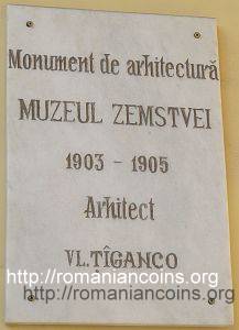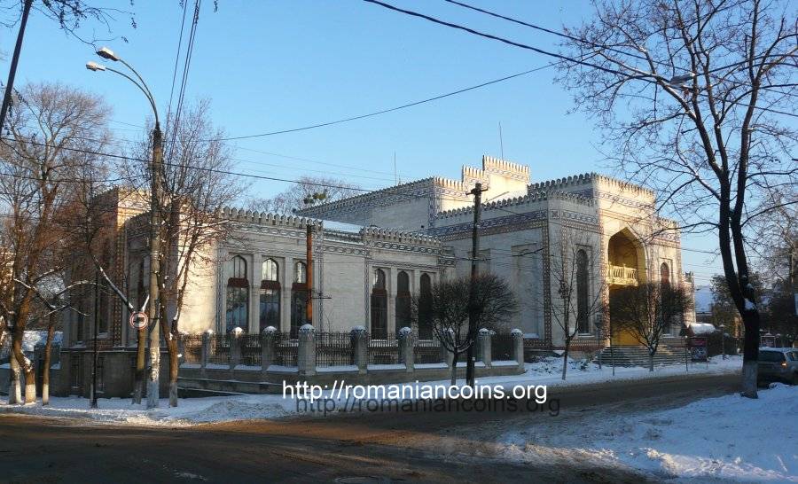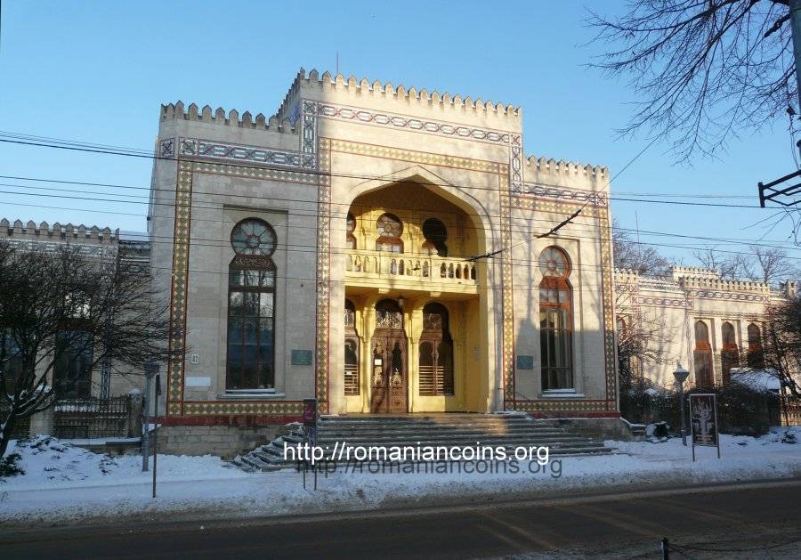 Clădirea în stil oriental care apare pe monedă a fost special construită pentru muzeu, fiind inaugurată în anul 1906. Proiectul construcției a fost întocmit de arhitecul moldovean Vladimir Țîganco.