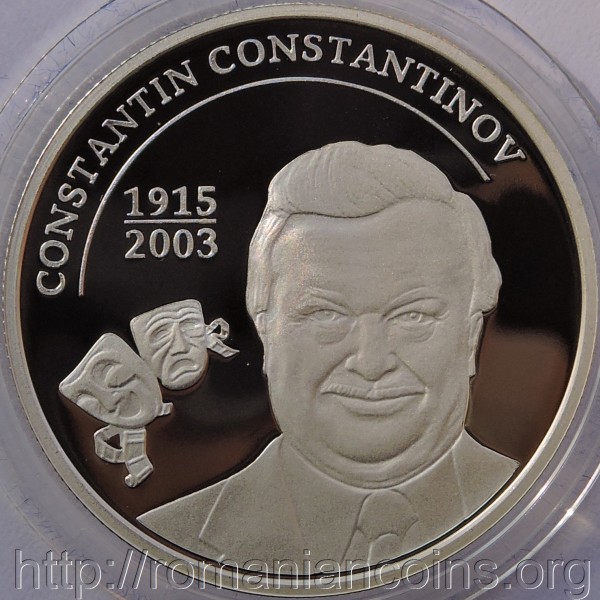 Prospectul monedei ne informează că actorul <<... s-a evidențiat atât în roluri comice, precum și în roluri dramatice. În teatru, actorul a interpretat circa 100 de roluri, inclusiv feminine, având un deosebit succes în rolul Chiriței din comedia scriitorului clasic V. Alecsandri Două fete și-o neneacă (1974). >>