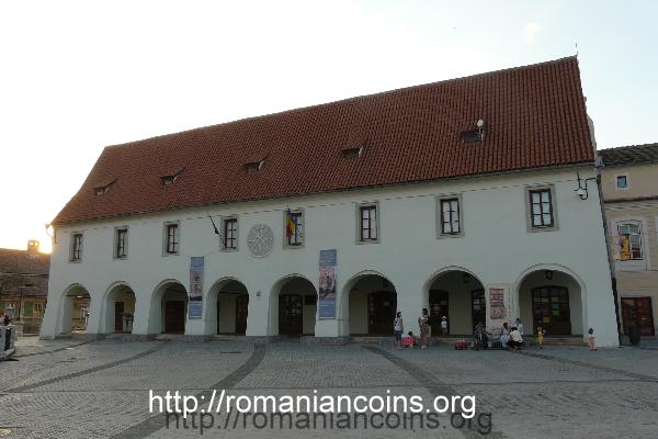 Casa Artelor se află în Piața Mare nr. 21 și datează din secolul al XV-lea. Are 8 arcade. I se mai spunea și Casa Măcelarilor, după magazinele care se aflau la parterul clădirii. La restaurarea din 1787 a fost pusă pe fațadă stema orașului. Pe monedă stema este vizibilă, dar apare doar ca un punct în zona centrală a clădirii.
