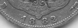 Varianta e ceva mai rară (însăși anul 1882 e mai rar, greu poate fi găsită o piesă din 1882 în stare bună), pentru edificare am căutat-o pe net (ebay, okazii, ș.a.), am mai găsit una cred, în afară de a mea, la cinci - șase normale.