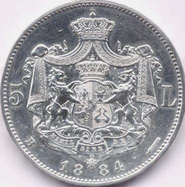 Imaginile monedei de 5 lei din 1884 de mai jos sînt prezente pe site prin amabilitatea domnului Florin Andrei Lungu.