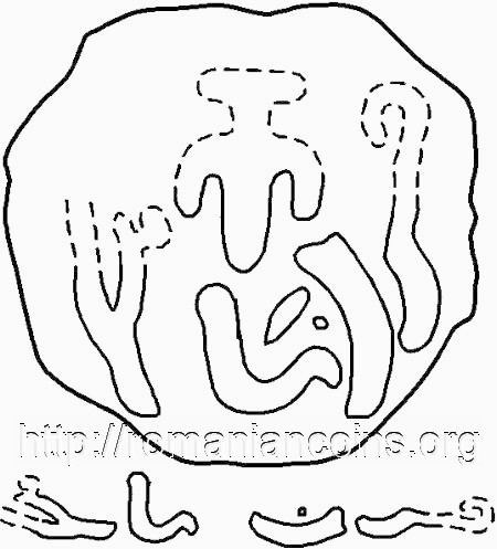 După [1], inscripţia de pe monedă este „neclară”. Pe internet am găsit, în afară de imaginile piesei de mai sus, doar foarte puţine alte imagini: două pe ZENO.RU [7], trei în [1] şi încă una (însoţită de un desen) în [6]. Din păcate în nici una din imaginile disponibile nu se poate vedea o inscripţie clară şi completă.