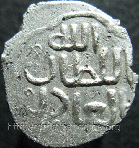 Pe revers se poate citi duribe al-mahrusah Şehr al-Jadid [7], adică bătută la Oraşul Nou cel Păzit (de Dumnezeu). După [6], şehr înseamnă oraş, al-Jadid înseamnă cel Nou, iar al-Mahrusa - cel Păzit de Dumnezeu. Se pot observa şi două ligaturi interesante, l+m+h+r şi l+j+d. Saveliev [8] citeşte al-Mahrusat, cu ultima literă ﺔ în loc de ﻪ. După Plant [6], mahrusat se traduce prin citadelă - ceea ce poate că ar permite traducerea inscripţiei sub forma „bătută în citadela Oraşului Nou”.