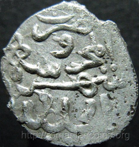 diametru 16 mm, neregulat, 1.2 g, argint Avers într-un cadru ornamental format din şase arce de cerc inscripţia cu litere arabe: ﺍﻟﻟﻪ ﺍﻟﺴﻠﻄﺎﻦ ﺍﻟﻌﺎﺩﻞ | Revers inscripţie cu litere arabe: ﺿﺮﺐ ﺍﶈﺭﻭﺳﻪ ﺷﻬﺮ ﺍﳉﺪﻴﺪ |