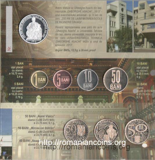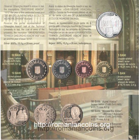 set de monetărie 2013 - 200 de ani de la înființarea la Iași a Școlii de inginerie |