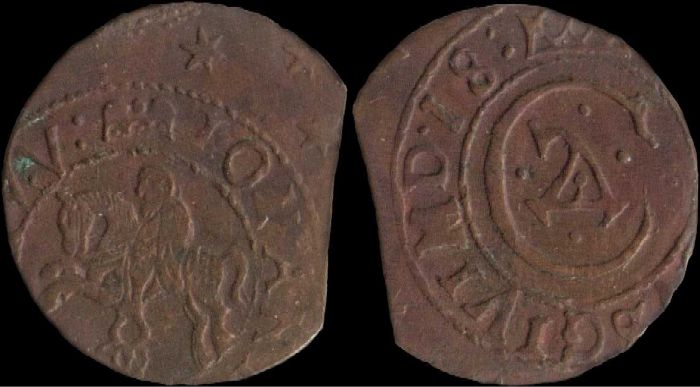 Revers Siglă formată din litera delta în interiorul literei C, patru globule; între cele două cercuri liniare coroană și legenda: [SOLIDV]S GIVI MD·18: |