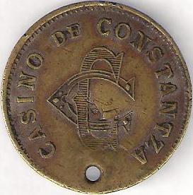 35 mm, ? g, alamă valoarea nominală 5 în cunună de ramuri de laur și de stejar, cerc perlat exterior, inscripția CASINO DE CONSTANTZA | inscripția CASINO DE CONSTANTZA, monograma CC, cerc perlat exterior; în interiorul monogramei un cîine sau poate un leu, poansonat; perforată - pe locul perforației trebuia să fie un mic ornament romboidal |