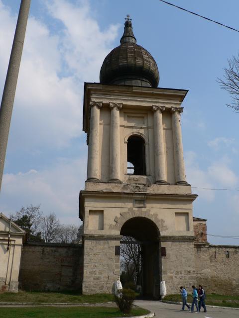 | turnul clopotniță al Mănăstirii Frumoasa, cu poarta de intrare |