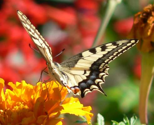Papilio machaon este un fluture mare, cu anvergura de 5-9 centimetri. Larva trăiește pe umbelifere, îndeosebi pe morcov sălbatic (Daucus carota - pe monedă, larva stă pe un vrej de morcov). La maturitate larva este verde-gălbuie cu dungi transversale negre și cu puncte roșietice.