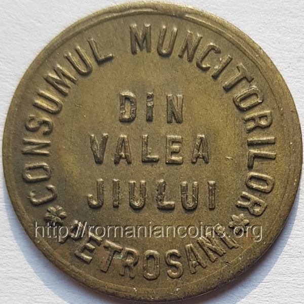 Consumul muncitorilor din Valea Jiului S.A. (Societatea Anonimă Română de consum a muncitorilor din Valea Jiului) a emis jetoane în perioada interbelică, folosite în magazinele proprii din Petroșani și din alte orașe miniere din zonă. Magazinele se găseau în spații aparținînd societății anonime Petroșani [2]. Capitalul Consumului muncitorilor era de 3 milioane de lei [2], jumătate fiind vărsat de societatea Petroșani iar restul de angajații acesteia. După [1], societatea a fost înființată în anul 1923, iar jetoanele au fost folosite pînă pe 29 mai 1931. După cum se vede, exista o legătură strînsă între societatea minieră Petroșani și Consumul muncitorilor din Valea Jiului.