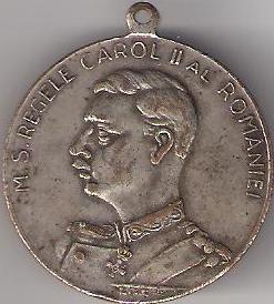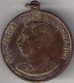 | ? mm, ? grame, metal galben, toartă și inel inscripția PREMIUL I ȘCOLAR *** | bustul regelui Carol al II-lea, ce poartă uniformă de paradă și cif cu panaș, inscripția M.S. REGELE CAROL II 8 IUNIE 1930 |