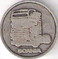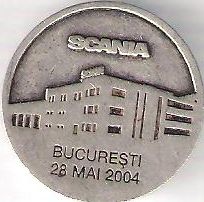 26 mm, argint, sau placat cu argint SCANIA, camion | SCANIA, o clădire ce care scrie SCANIA, inscripția incusă BUCUREȘTI 28 MAI 2004 |