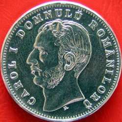 The inscription on the coin shows Carol I as prince of the Romanians, title chosen as to show that the Romanian state included only a share of the Romanians within its borders and its natural pretention to become a state of the entire nation. Because many millions of Romanians lived outside the country's borders in Transylvania, Banat and Bucovina this title bothered the government of Austria-Hungary, that saw there claims over their possessions inhabited by the Romanians (many Romanians lived also in the bigger part of Basarabia, still held by the Russian Empire after the Crimean War of 1856). On the following coins issued by Romania (1 silver leu and 20 gold lei from 1870) Carol I became DOMNUL ROMANIEI (PRINCE OF ROMANIA), being represented with the effigy on the coins. The presence of the effigy was deemed by Turkey as a sign of Romania's independence tendencies and, as consequence of Turkish protests, the effigy on the silver coins issued between 1872 and 1876 was replaced by the coat of arms or the crown of Romania.