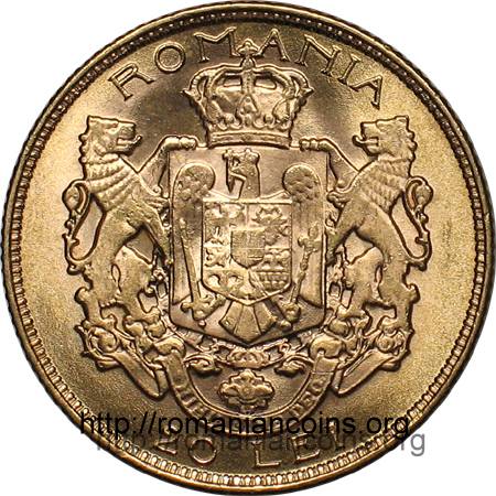 The coin pictured here belongs to a four coin set of 20, 25, 50 and 100 lei. 20 and 100 lei share common design, the same for 25 and 50. The entire set was engraved by the renowned French artist Paul Marcel Dammann (1885 - 1939). The catalog values of king Ferdinand gold coins indicate that a lot of them were not released. Mr. J. M. suggests that a large part of the mintage was melted, maybe to strike other coins.