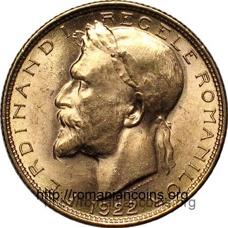 Struck in Great Britain at London Royal Mint, in 1928 or 1929 (after Octavian Iliescu and Paul Radovici, Monetele Romāniei, 2004), although antedated in 1922. The decree for the issuing of these coins was published in the Official Gazette on June 4th 1927. King Ferdinand died on July 20th the same year.