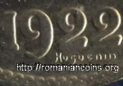In conformity with the forementioned table, patterns for 2 lei 1922 were struck using diffent alloys, namely: 87 from nickel, 75 from cupronickel, 80 from bronze, 61 from aluminum bronze, 65 from copper, 66 from tombac, 60 from brass and 79 from an alloy named "thuna" in French (probably the commercial name of an aluminum alloy - the name comes probably from the Swiss city of Thun, where an important metalurgical plant has functioned at that time).