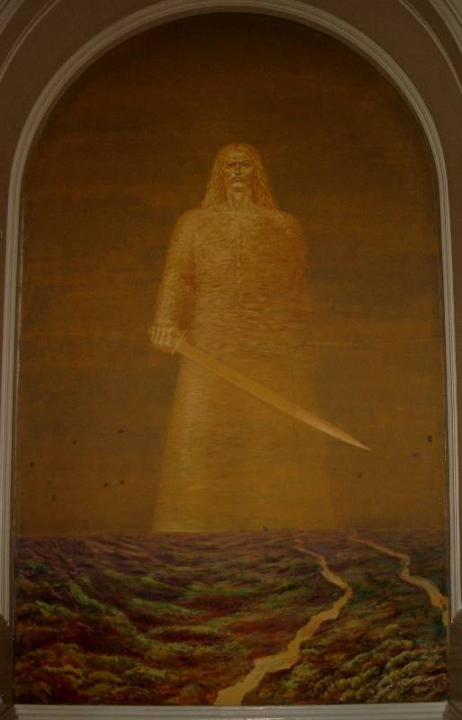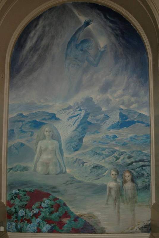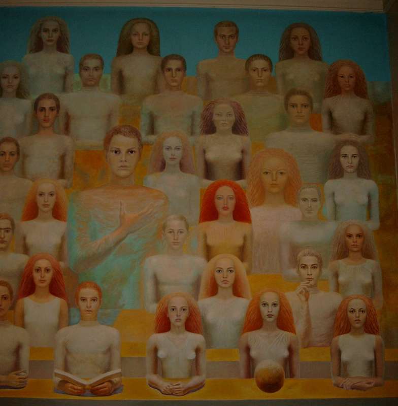 | una din primele fresce, pictate de Sabin Bălașa pentru centenarul Universității din 1960 |