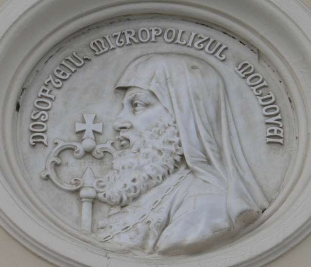 | Mitropolitul Moldovei Dosoftei (1624-1693); creatorul poeziei românești culte prin "Psaltirea pre versuri întocmită", a promovat introducerea limbii române în biserică; lucrare semnată I. Georgescu |