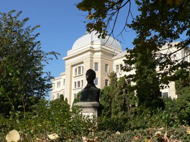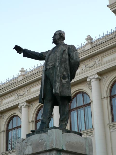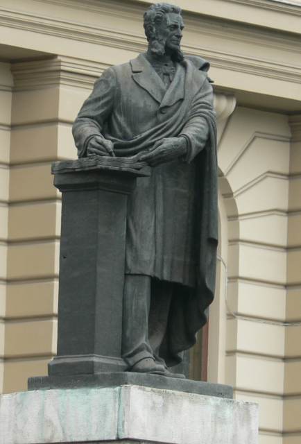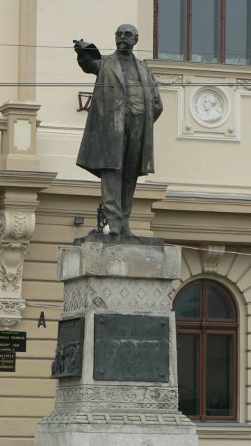 | statuia lui A.D. Xenopol din fața Universității Alexandru Ioan Cuza, văzută de peste stradă - septembrie 2007 |